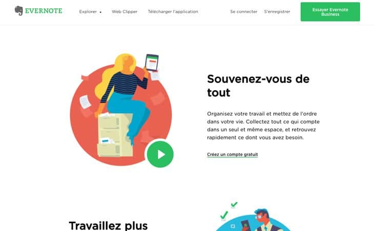 « Organisez-vous. Travaillez mieux. N’oubliez rien. » tel est le slogan d’ Evernote qui résume très bien ce puissant outil, véritable facilitateur du travail au quotidien. Ce logiciel caractérisé par une tête d’éléphant enregistre les informations de votre choix sur une seule et même plateforme. Vos notes peuvent prendre la forme d’un fichier texte, d’une vidéo, d’un mémo vocal… Ces dernières peuvent être éditées et/ou assorties de commentaires ou d’annotations pour les partager à vos contacts.
