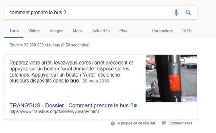Les « featured snippets » sont les résultats encadrés de Google directement extraits d’une page web. Ils apparaissent en réponse à une question posée par l’internaute. Vous observerez donc l’importance du contenu à fournir pour répondre du mieux possible aux requêtes des internautes…