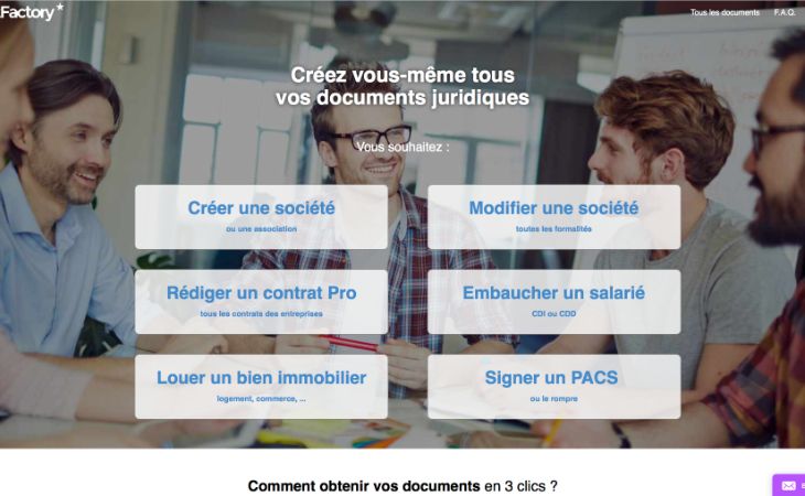 Sur le site de Contract Factory, vous avez la possibilité de créer n’importe quel document relatif à la création et la bonne gestion de votre entreprise pour mieux le personnaliser. Ainsi, la création de votre entreprise ou votre association se fait en ligne et très rapidement. Le site vous aide également dans le choix du statut juridique. Vous pouvez également embaucher un salarié, rédiger un contrat pro, louer un bien immobilier ou signer un PACS grâce aux nombreux documents présents en ligne téléchargeables. La particularité du site est qu’il est en grande partie gratuit !