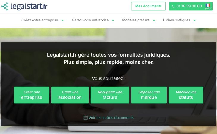 Création d’entreprise, dépôt de marque, demande d’aides à la création, pacte d’actionnaires et autres contrats juridiques en tous genres… Legalstart est un service juridique pour les entreprises qui vous propose de l’aide et un accompagnement aux petits oignons pour choisir votre structure et gérer vos formalités en un tour de main. Un outil efficace pour créer votre boîte en toute sérénité ! Avant de la créer, vous pouvez comparer les statuts juridiques en ligne ou contacter un avocat depuis le site. Les tarifs proposés par Legalsart vont de 99 € à 549 € selon vos besoins.