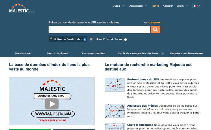 Moteur de recherche marketing, outil d’analyse de liens et d’audit de site MAJESTIC SEO plus connu sous le nom de MAJESTIC, est une solution très prisée des professionnels du référencement. Sur le site MAJESTIC, il est d’ailleurs précisé que l’outil est destiné aux experts du SEO, aux analystes des médias, aux chefs d’entreprise et enfin, aux développeurs web.